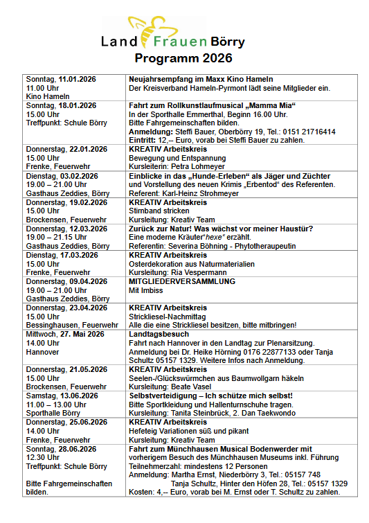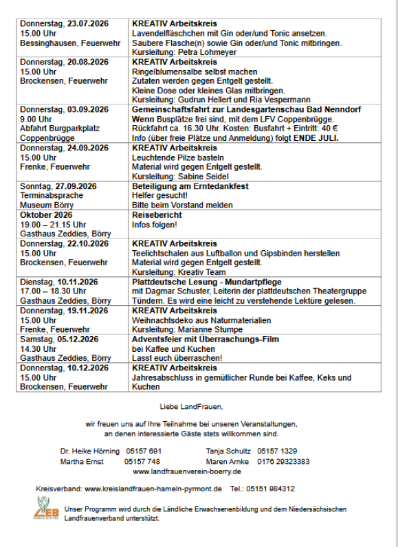Der LandFrauenverein Börry. Börry im Namen, das Ilsetal im Herzen. Traditionell ein Frauen-verein, aber immer offen für interessierte Männer!